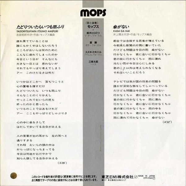 MOPS モップス / たどりついたらいつも雨ふり [7INCH]